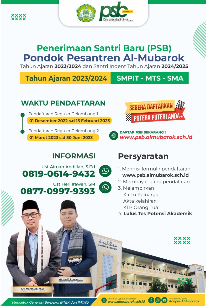 - Mengisi formulir yang telah disediakan melalui online ppdb.epesantren-almubarok.com